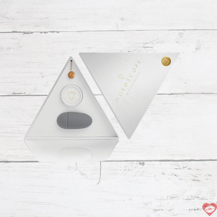 Bộ sản phẩm được đóng gói tinh tế trong hộp tam giác lộng lẫy, gồm ba món đồ đồng điệu hoàn hảo với năng lượng cung hoàng đạo của bạn: