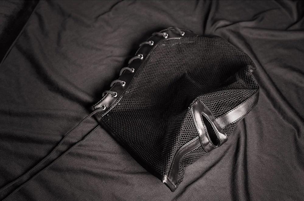 Mặt nạ bondage fishnet đen mang đến cảm giác gợi cảm an toàn, lý tưởng cho hẹn hò nóng bỏng.
