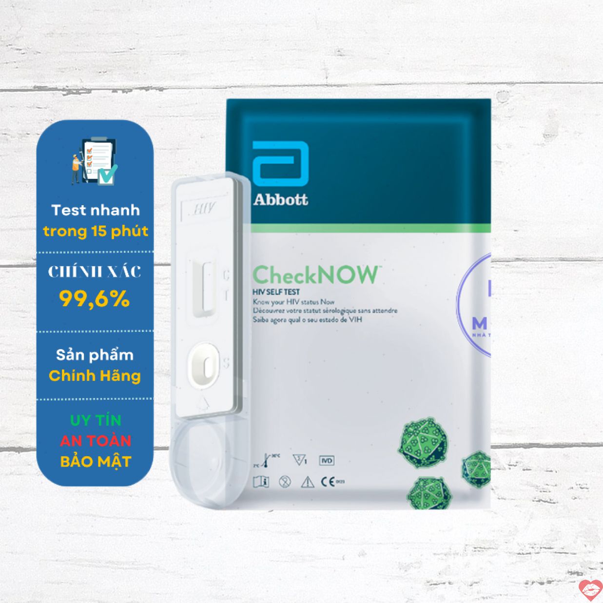 Bộ que kit test CheckNow Abbott Hoa Kỳ – Xét nghiệm HIV chính xác, tiện lợi ngay tại nhà 🏠💉