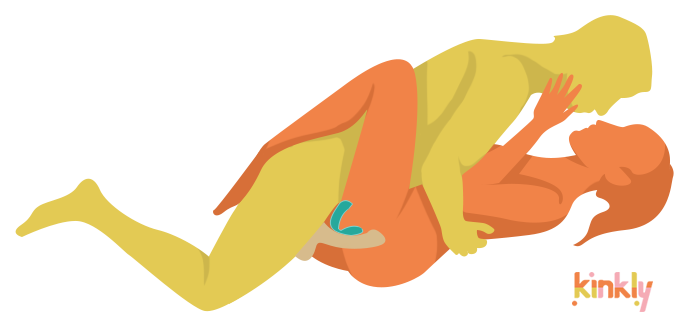 Ấn nhẹ vào âm đạo, hướng lên bụng để ôm điểm G – phần ngoài tự áp sát âm vật.