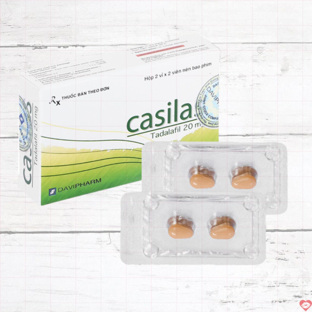 Mỗi viên Casilas 20mg chứa hoạt chất chính Tadalafil với hàm lượng chuẩn 20mg – một trong những thành phần được tin dùng trong điều trị rối loạn cương dương. Ngoài ra, viên thuốc còn kết hợp các tá dược an toàn như cellulose vi tinh thể, povidon, magnesi stearat, croscarmellose natri… giúp viên thuốc đạt độ bền chắc, dễ tan và nâng cao hiệu quả tác dụng.